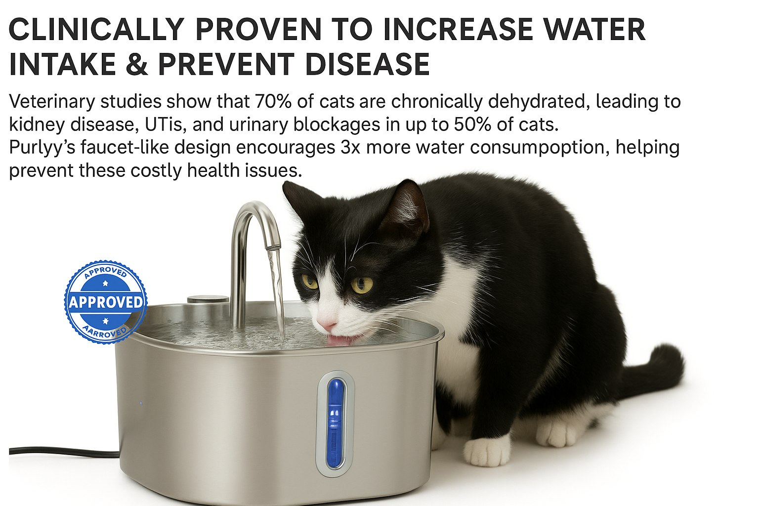 Result: your cat drinks throughout the day, stays hydrated, and avoids dangerous urinary issues.